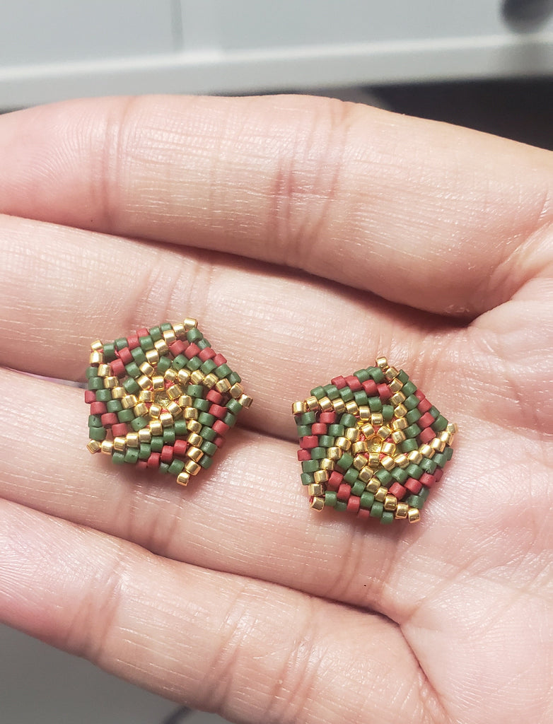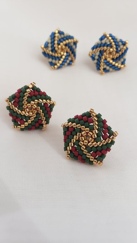 Aretes confeccionados con Miyuki Delicas y tejidas completamente a mano.