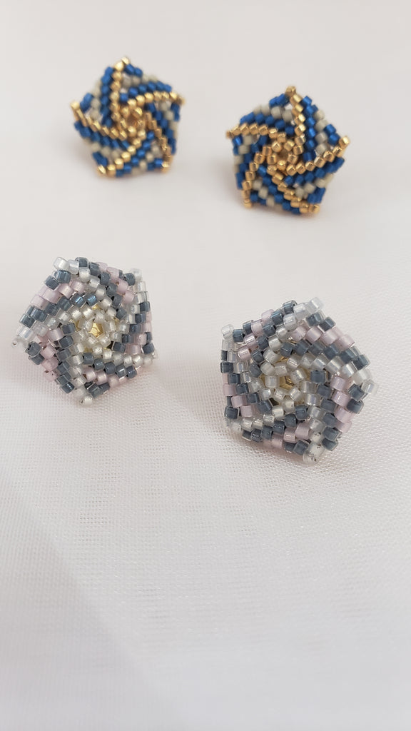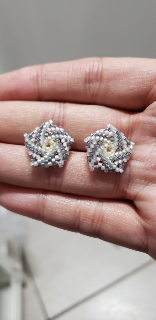 Aretes confeccionados con Miyuki Delicas y tejidas completamente a mano.